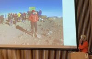 Marit Kvernmo fortalte først litt om sin oppvekst på Fuglset og sine interesser innen friluftsliv og idrett. Hun har blant annet gjennomført Birkebeineren, Vasaloppet og Marcialonga på et år! Videre viste hun bilder fra en tur til Kilimanjaro i anledning sin 50-års dag.